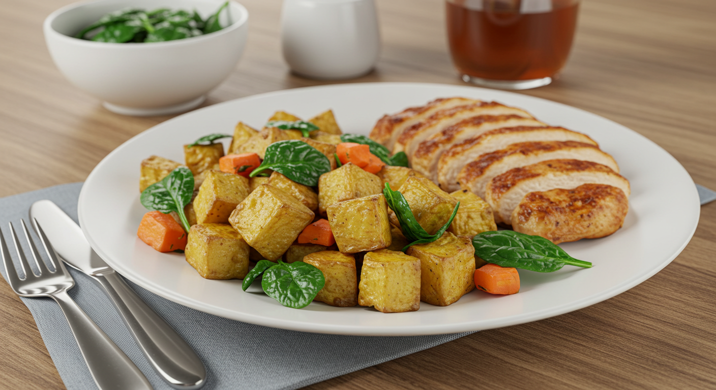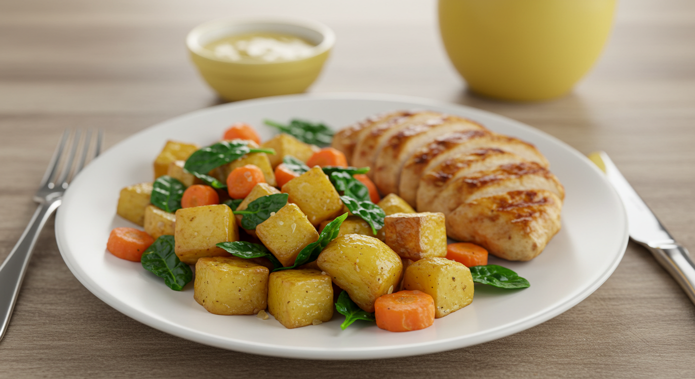 감자와 채소를 함께 섭취하면 식이섬유가 추가되어 혈당 상승을 완화시킬 수 있어요.