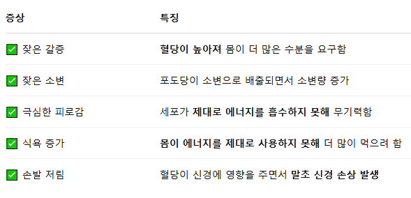 단순히 살이 빠지는 것만으로는 당뇨를 단정 짓기 어렵습니다. 하지만 아래 증상까지 동반된다면 당뇨병 가능성이 높으므로 꼭 검사를 받아보세요.