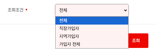 조회 조건에서 직장가입자, 지역가입자, 가입자 전체를 선택하여 프린트발급, 팩스전송, 전자증명서로 보낼 수 있습니다.