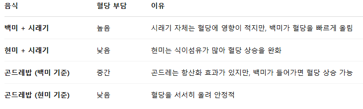 👉 먹어도 괜찮지만, 백미보다는 현미나 잡곡과 함께 먹는 것이 좋아요. 곤드레 자체는 혈당에 큰 영향을 주지 않지만, 밥의 종류가 중요합니다.