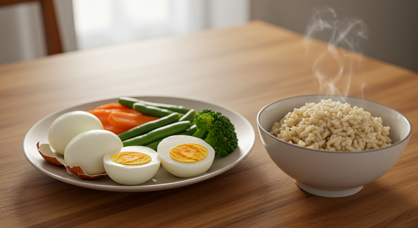 - 단백질: 삶은 달걀, 닭가슴살, 두부