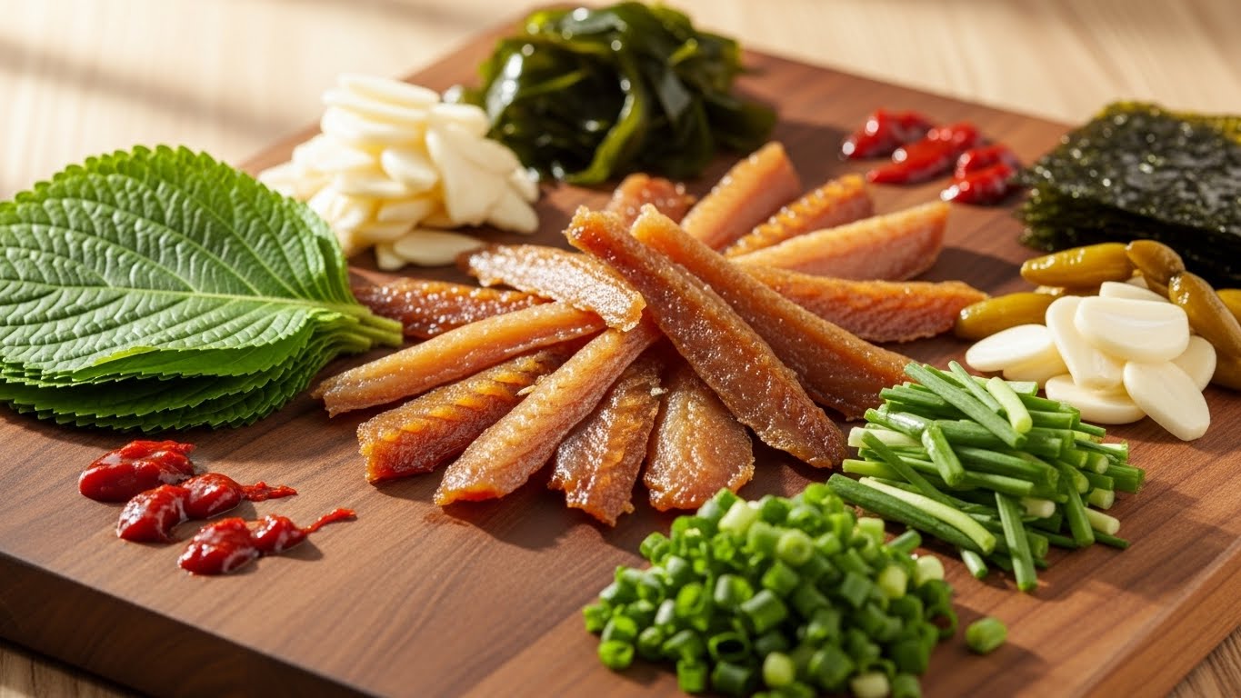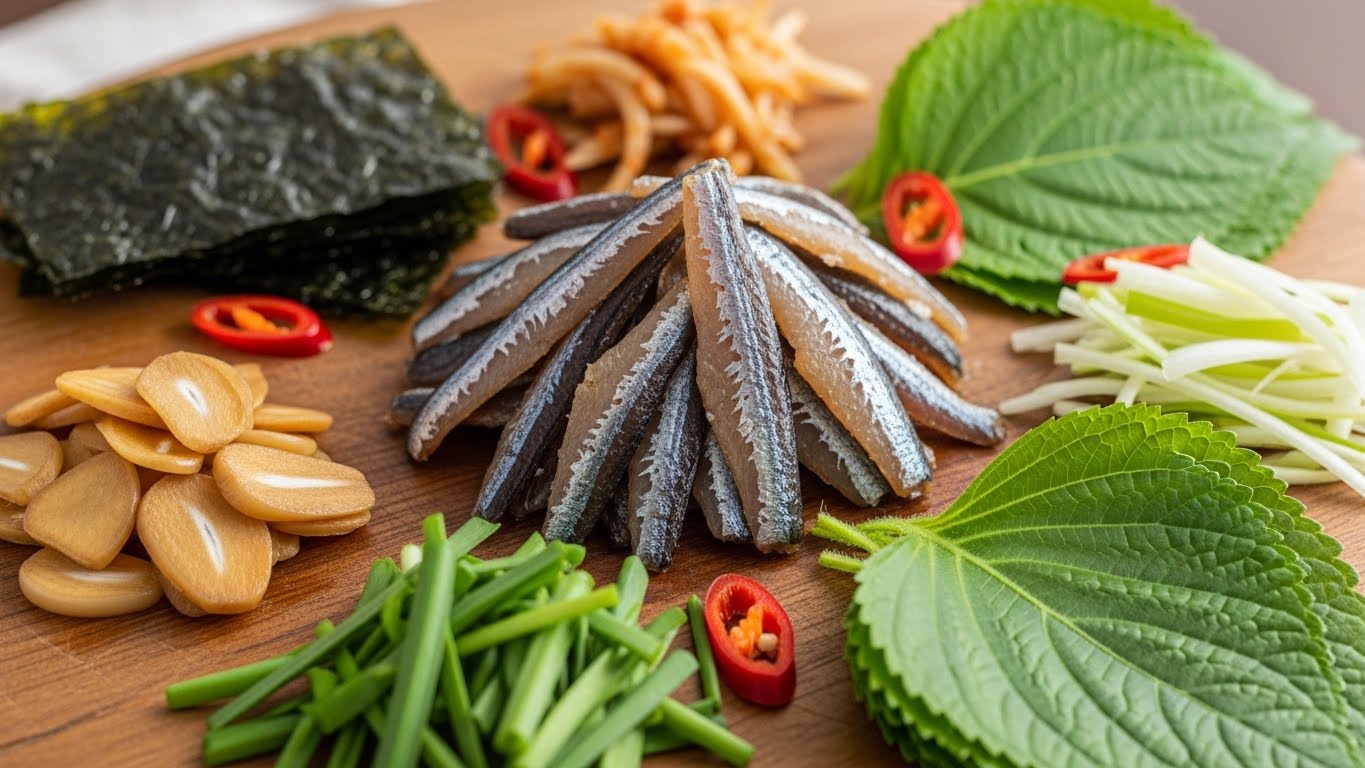 1. 비린내 0% 조합: 김 + 마늘장아찌 + 미역줄기