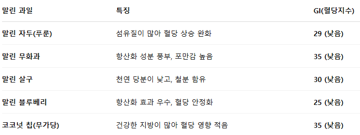 👉 GI 지수가 낮은 푸룬, 살구, 무화과 위주로 선택하세요.