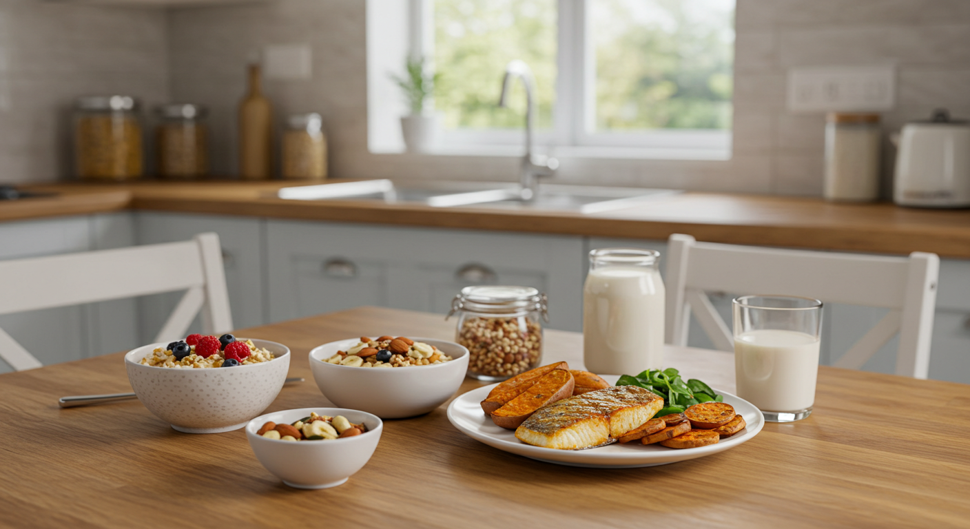 특히 현미, 귀리, 보리 같은 통곡물은 식이섬유가 풍부해서 소화를 천천히 도와주죠.