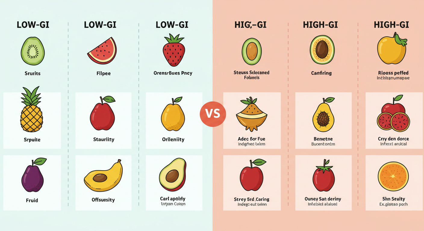 이 과일들의 공통점은 GI가 낮고, 섬유질이 풍부하며, 항산화 성분이 많다는 점이에요.