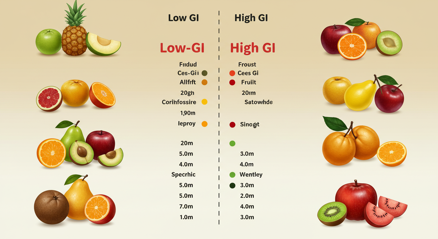 이 과일들의 공통점은 GI가 낮고, 섬유질이 풍부하며, 항산화 성분이 많다는 점이에요.