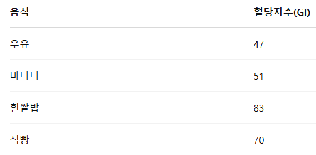 우유의 혈당지수 비교