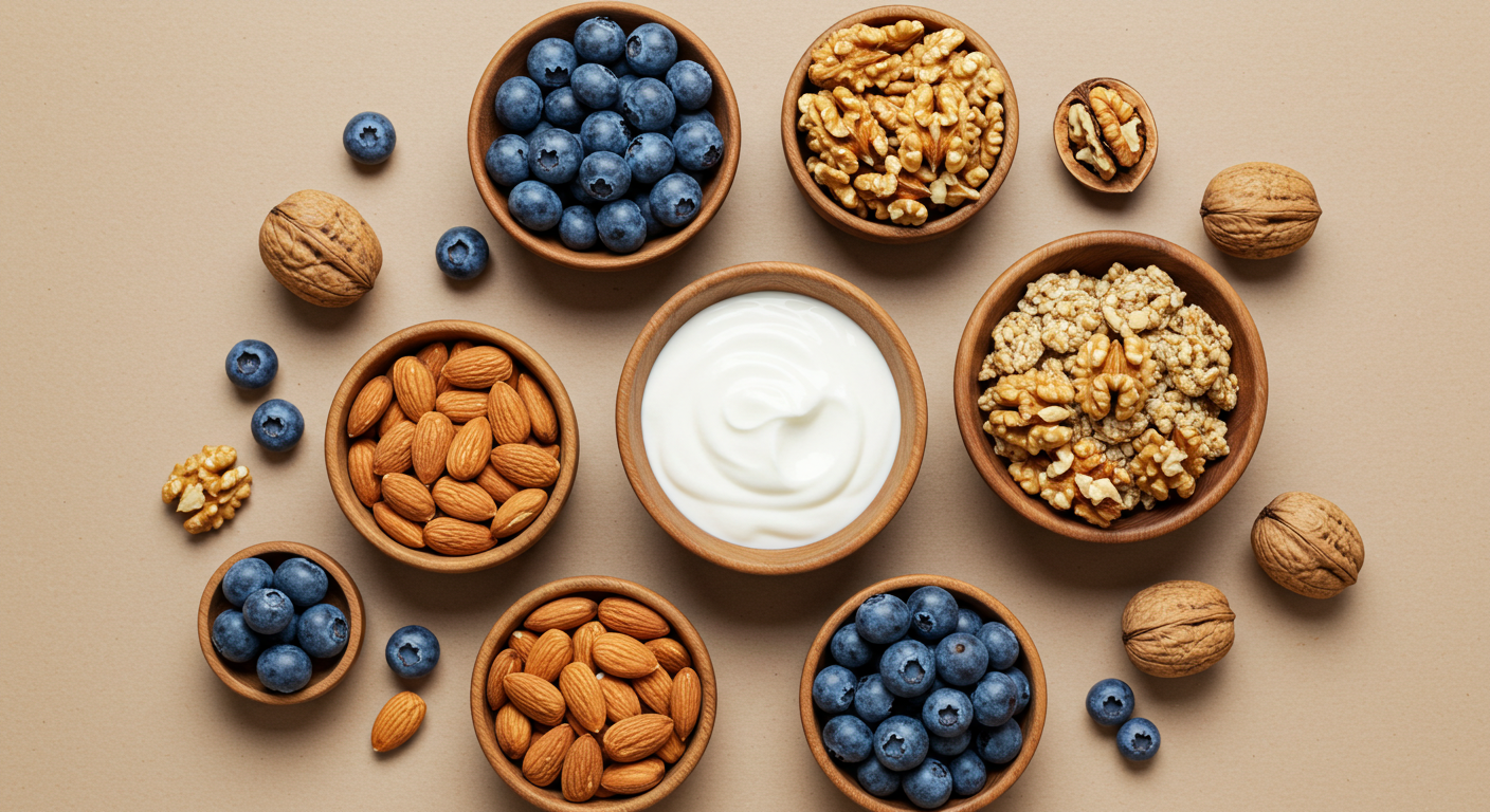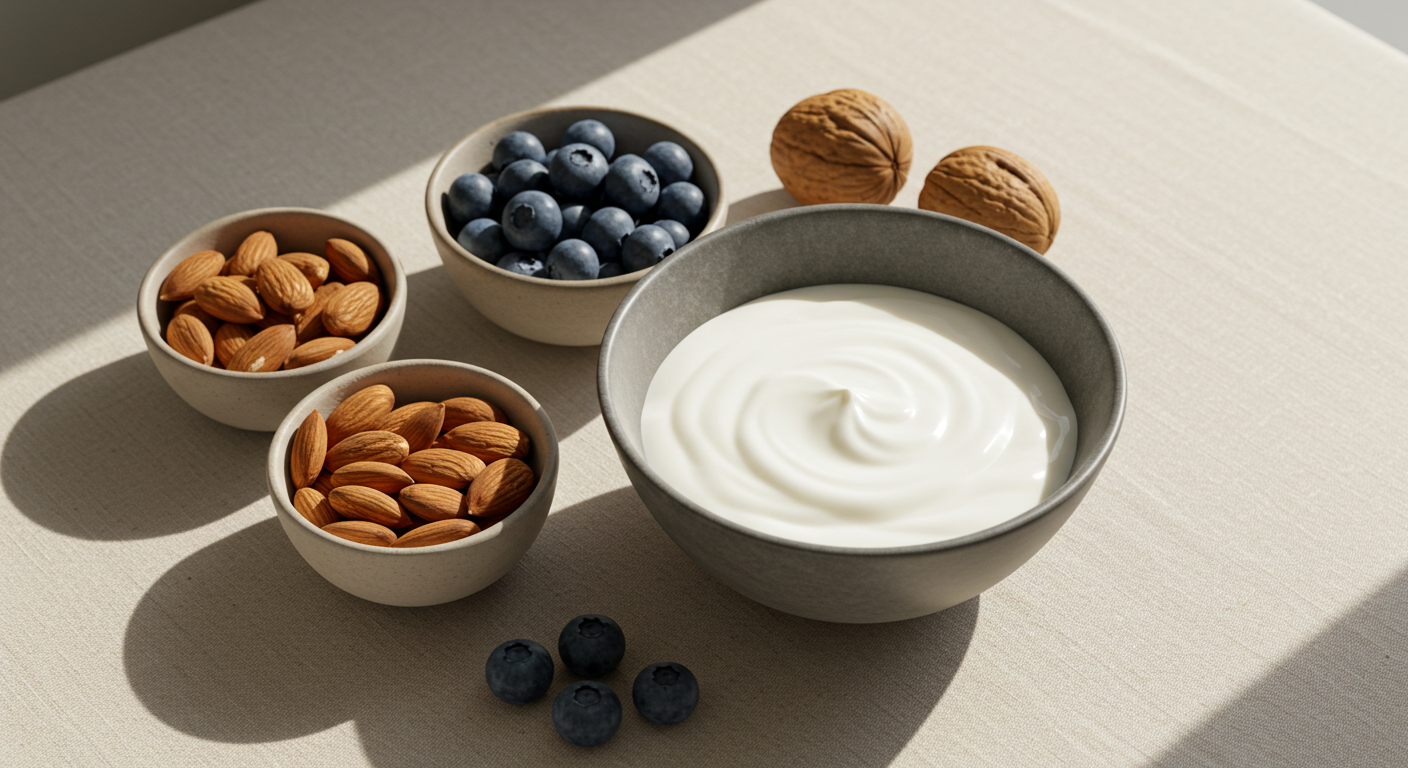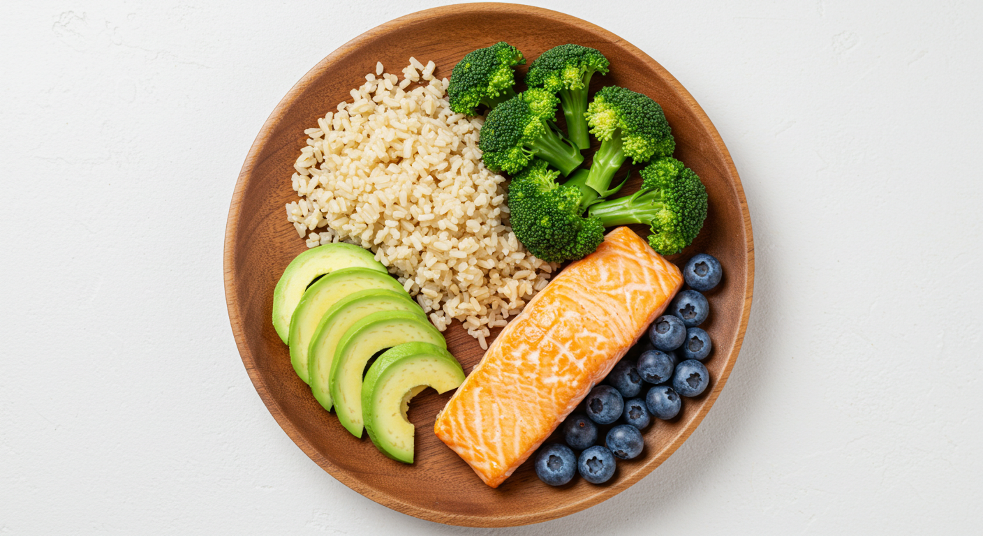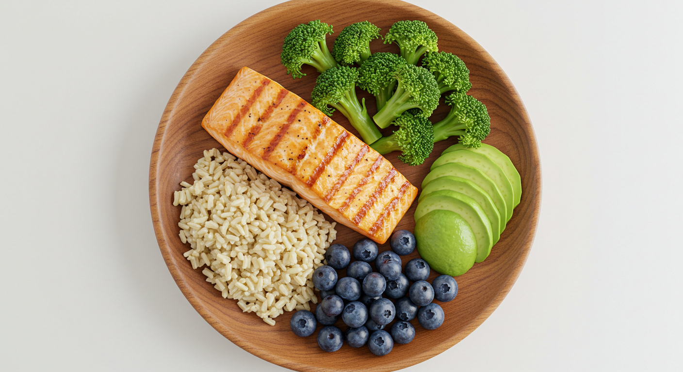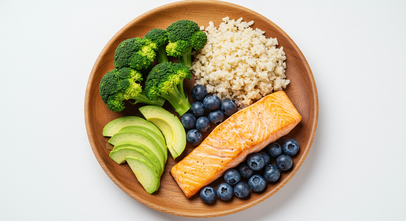 아침엔 귀리+견과류+그릭요거트, 점심엔 현미밥+채소+생선, 저녁엔 가벼운 샐러드+삶은 계란 정도가 이상적이에요.