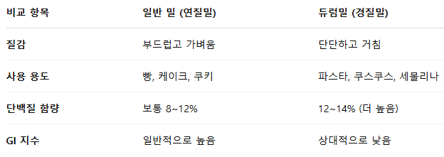 🔹 일반 밀 vs 듀럼밀 차이점