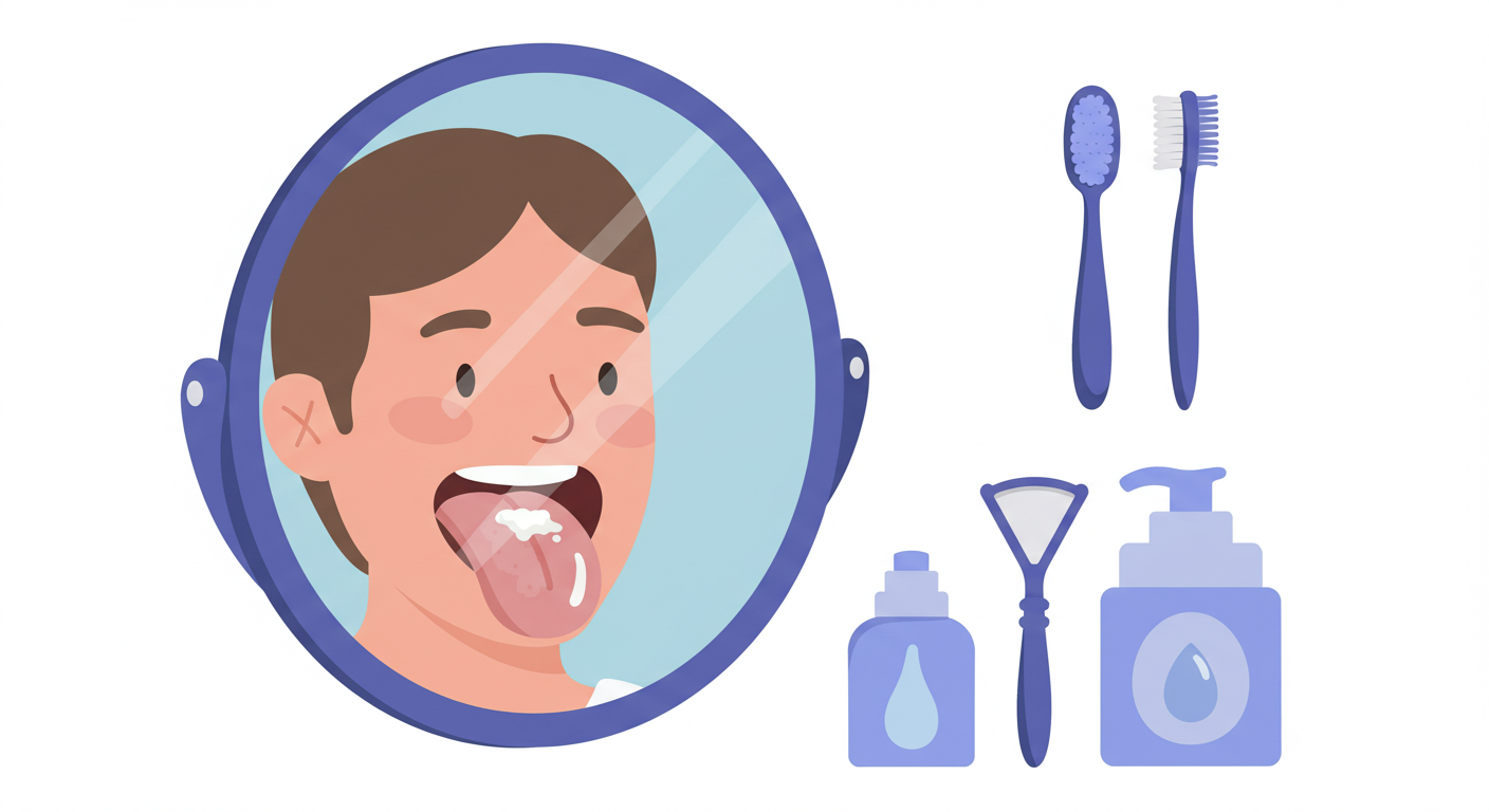 - 혀 클리너 사용: 하루 1~2회, 혀 뿌리부터 끝까지 부드럽게