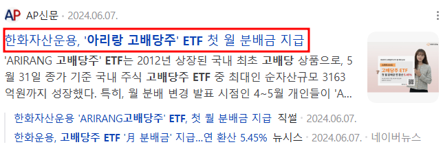 아리랑 고배당주 ETF는 그동안 연 1회의 배당금을 지급했으나, 2024년부터 월배당 ETF로 전환됐다. 이를 통해 매월 일정한 현금 흐름을 원하는 투자자들의 수요를 반영한 결정이었다. 월배당으로 전환되면서, 배당 수익을 꾸준히 얻고자 하는 투자자들에게 큰 매력이 되고 있다.