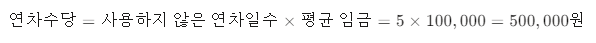 연차수당 계산: 사용하지 않은 연차일수에 평균 임금을 곱하여 연차수당을 계산합니다.