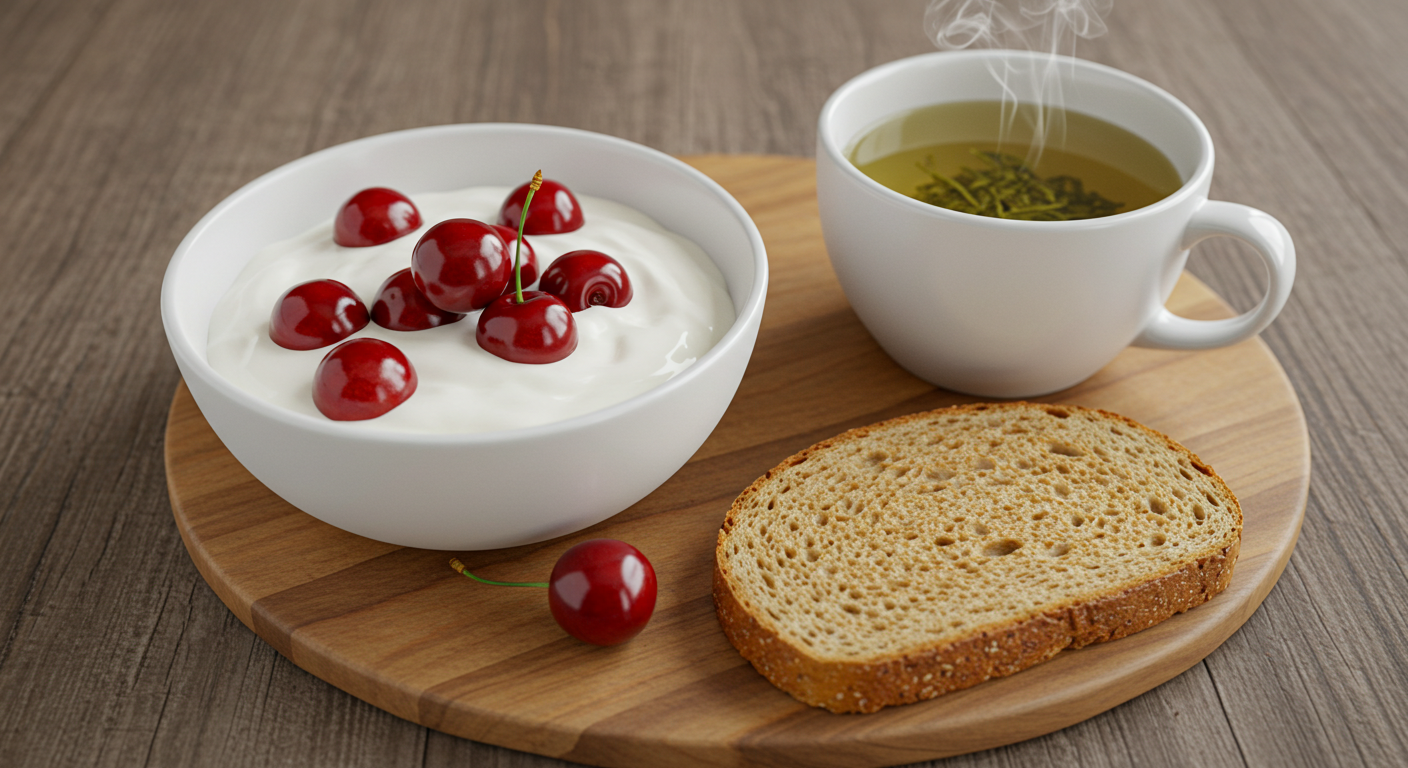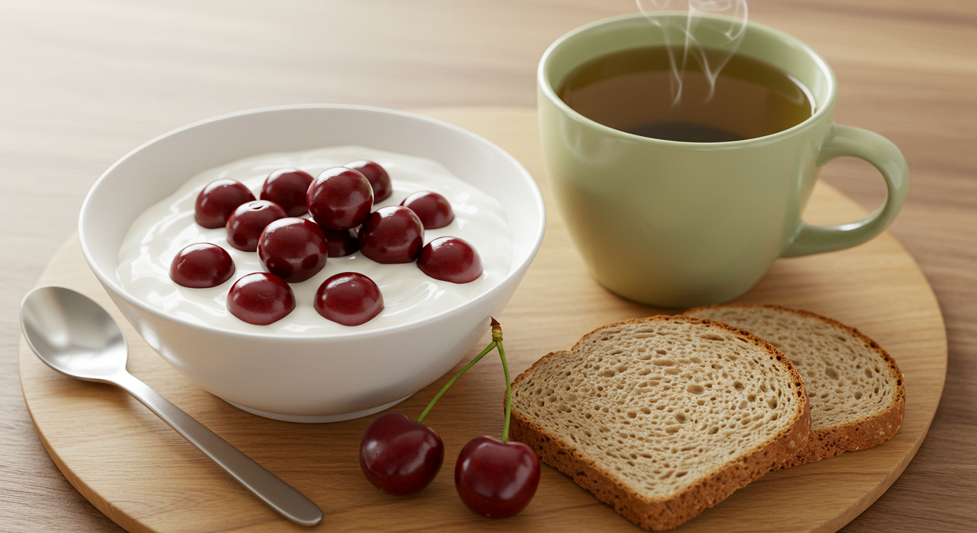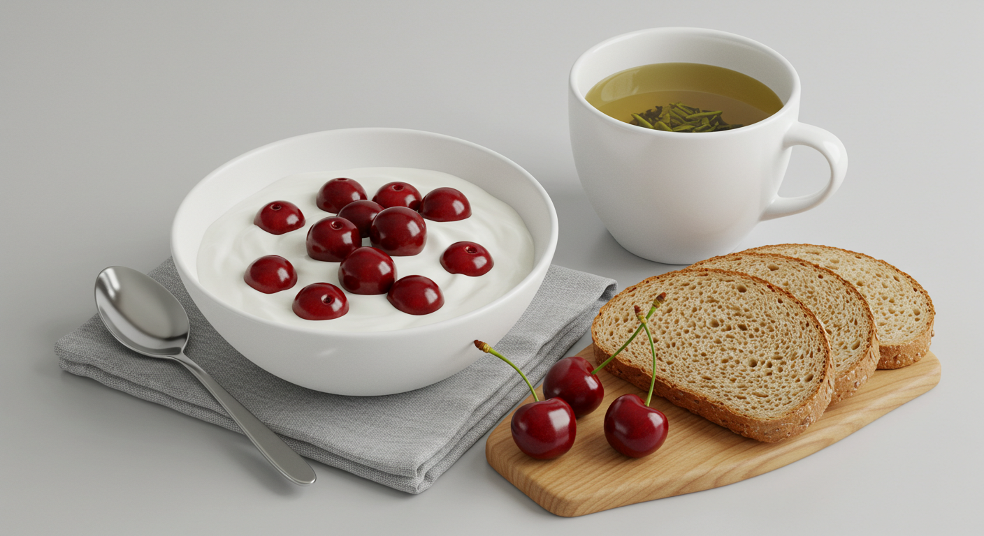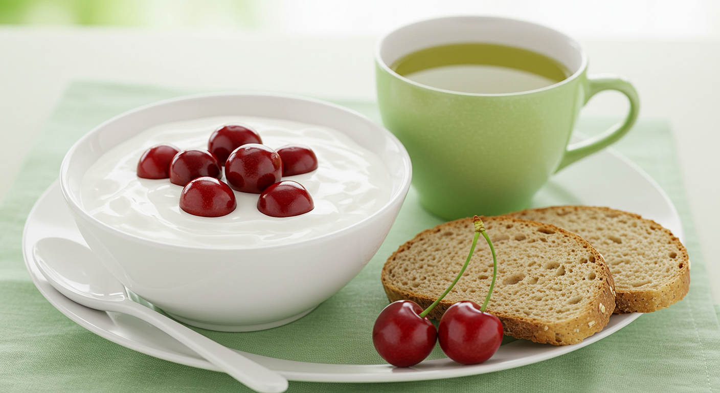 - 아침: 체리 + 요거트 + 녹차