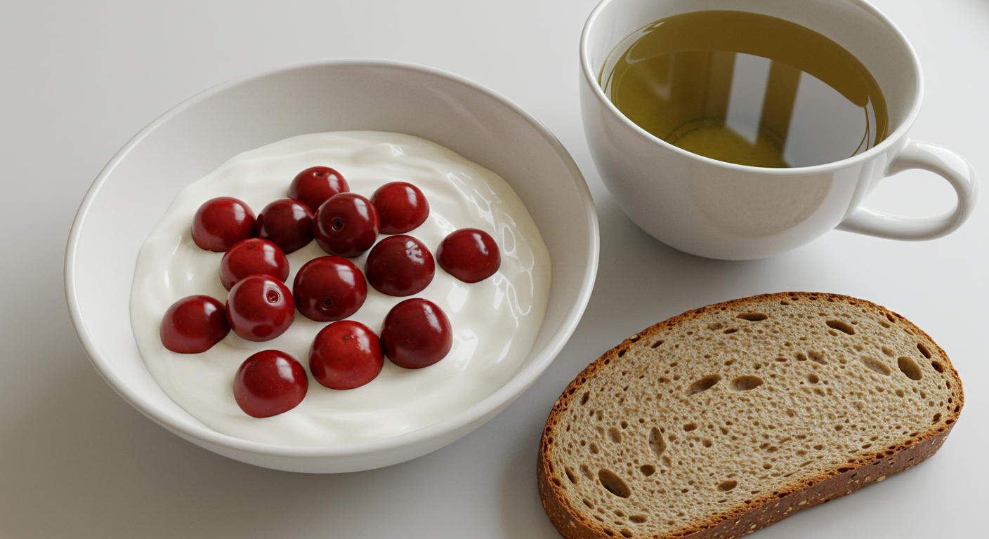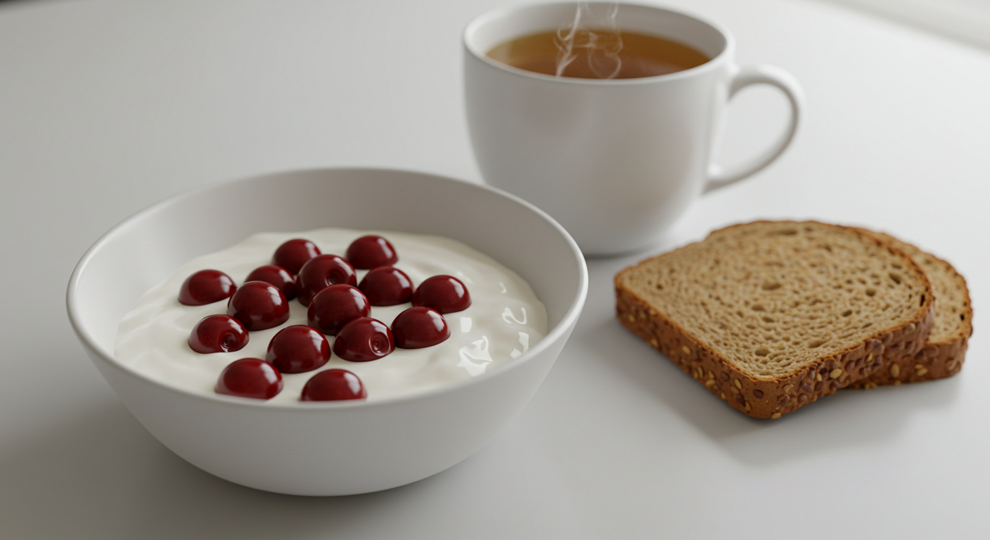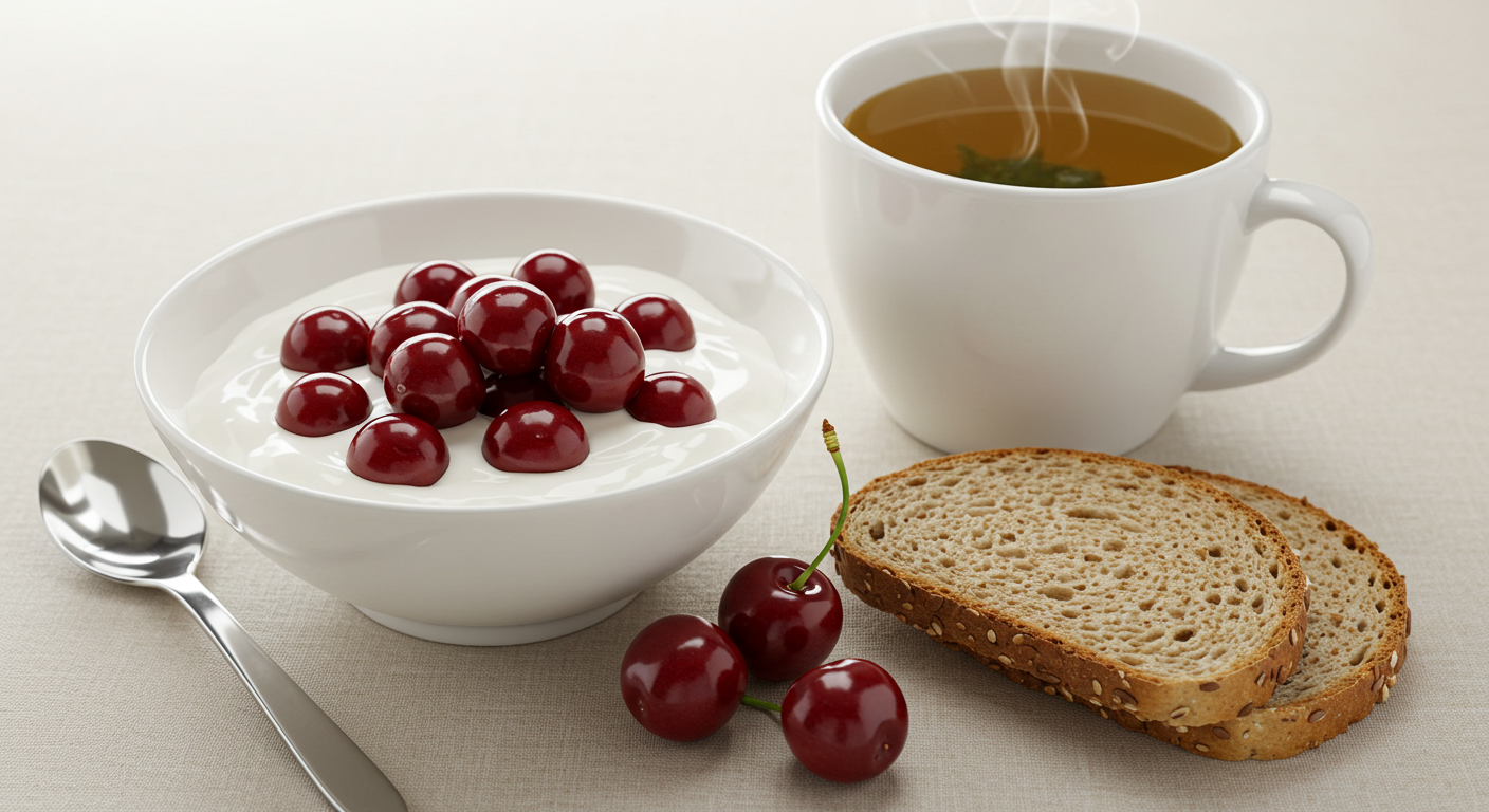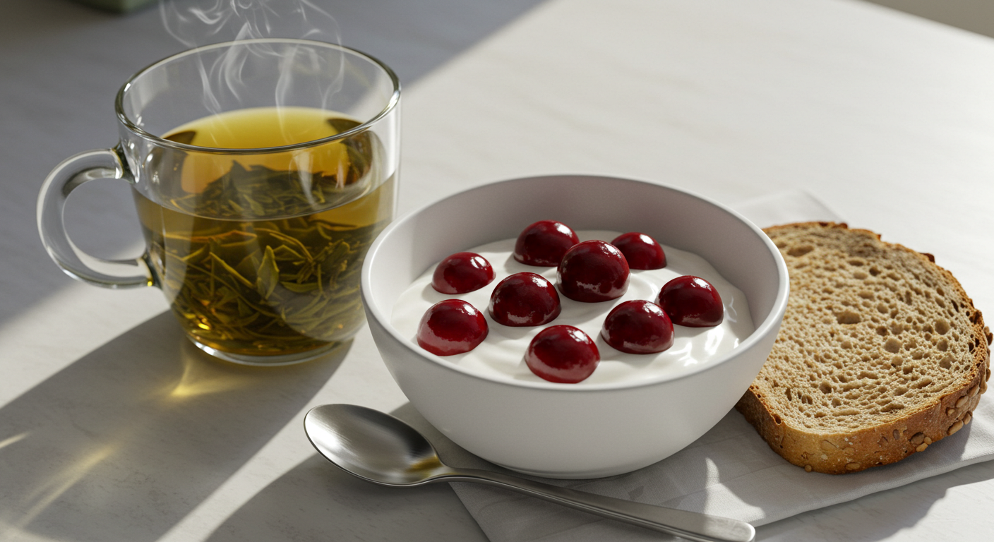- 아침: 체리 + 요거트 + 녹차
