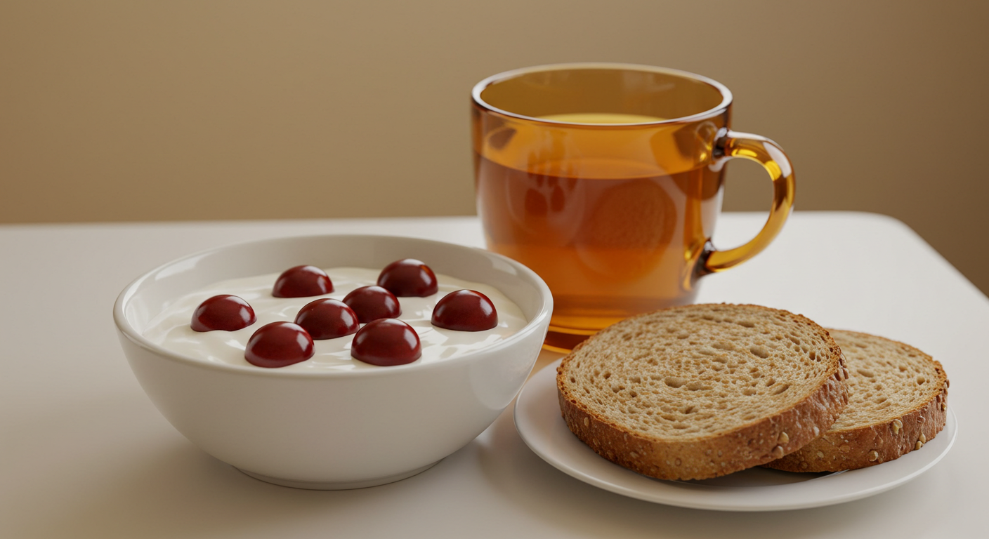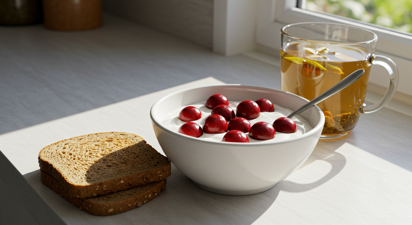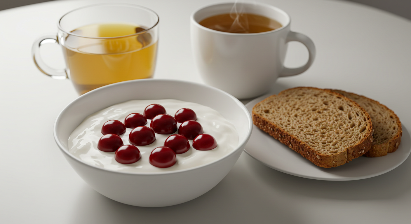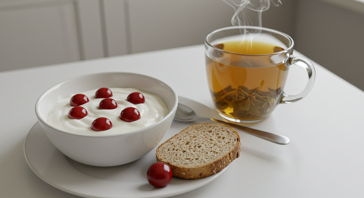 - 아침: 체리 + 요거트 + 녹차