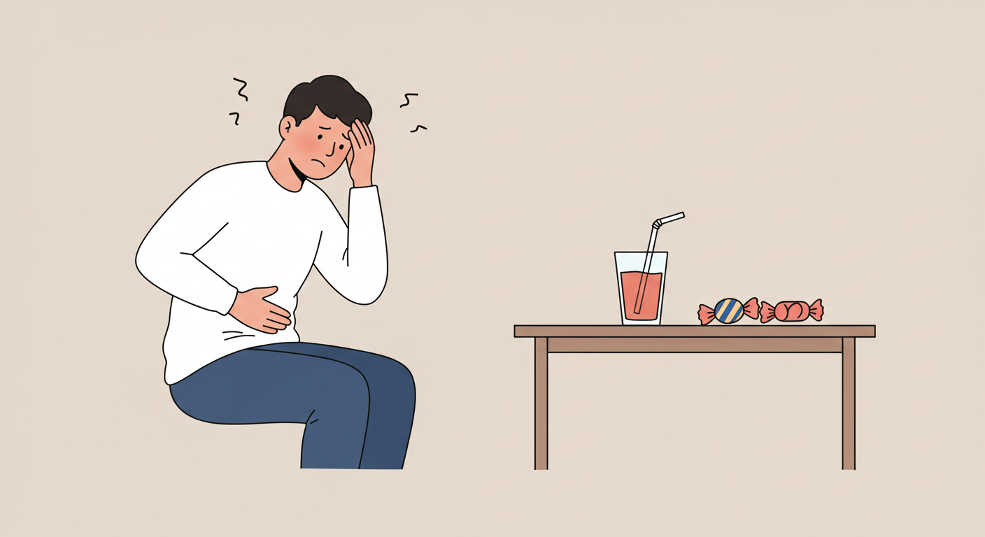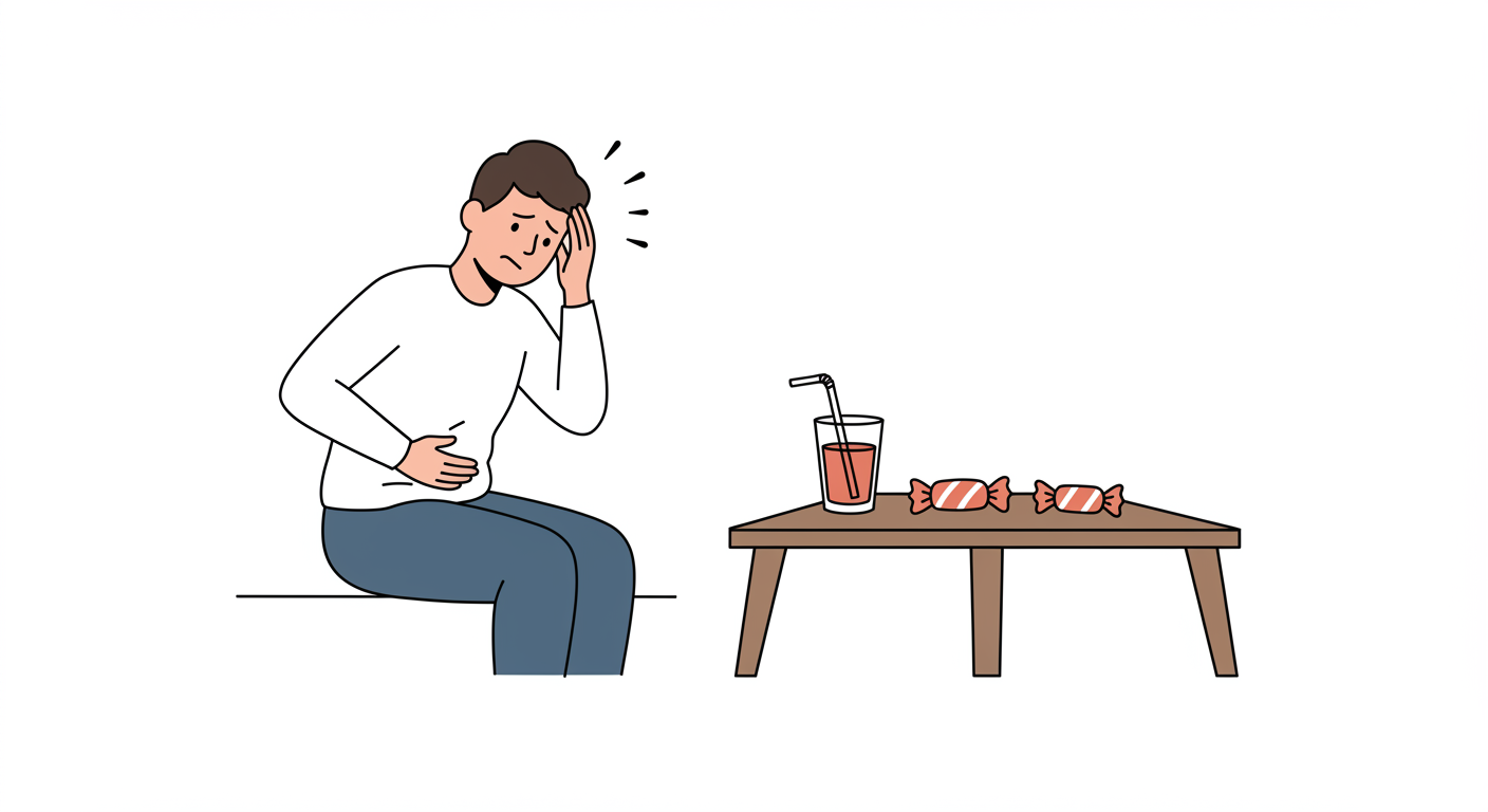 가능하지만 즙 형태(예: 포도주스)가 흡수가 더 빨라 응급 상황에 적합합니다. - 다이어트 중인데 저혈당 자주 와요. 어떻게 해야 하죠?간식 타이밍 조절과 복합탄수화물 섭취를 늘려보세요.