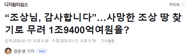 이번에 조상 땅 찾기 서비스로 1조 9400억여원 규모의 숨은 땅을 찾았다는 기사가 나왔는데요.