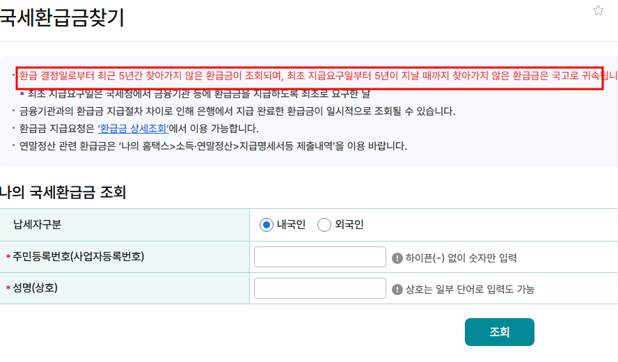 - 환급금 조회는 몇 년까지 가능한가요? 최근 5년간의 환급금 조회가 가능해요. 그 이전의 환급금은 세무서에 문의해야 해요.