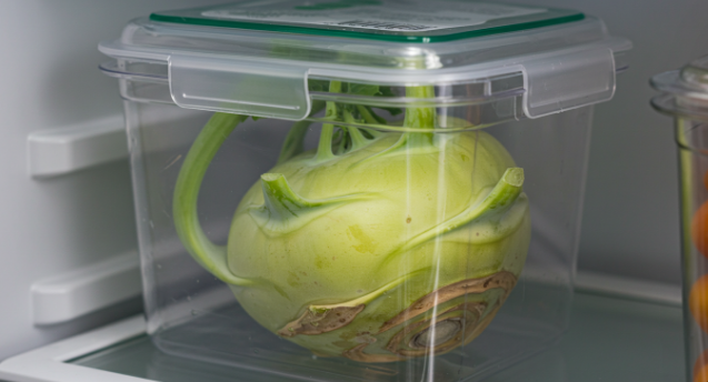 냉장보관할 때는 콜라비를 비닐봉지에 넣거나 밀폐 용기에 담아 보관하는 것이 좋아요. 이때 공기가 잘 통하지 않도록 밀봉해야 수분 증발을 방지하고 신선도를 유지할 수 있어요. 냉장실의 채소 보관칸에 두면 가장 적합합니다. 이렇게 보관하면 1~2주 정도 신선하게 보관할 수 있어요.