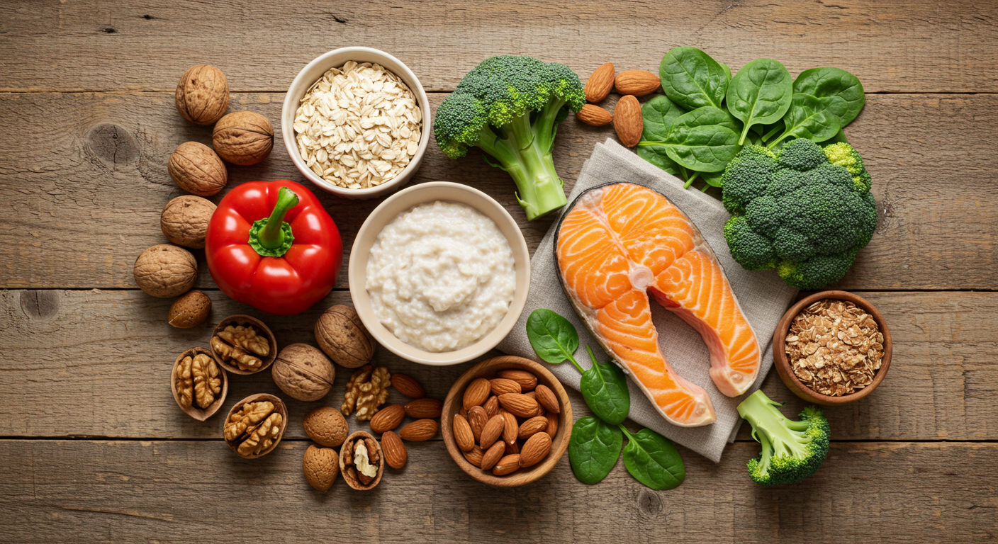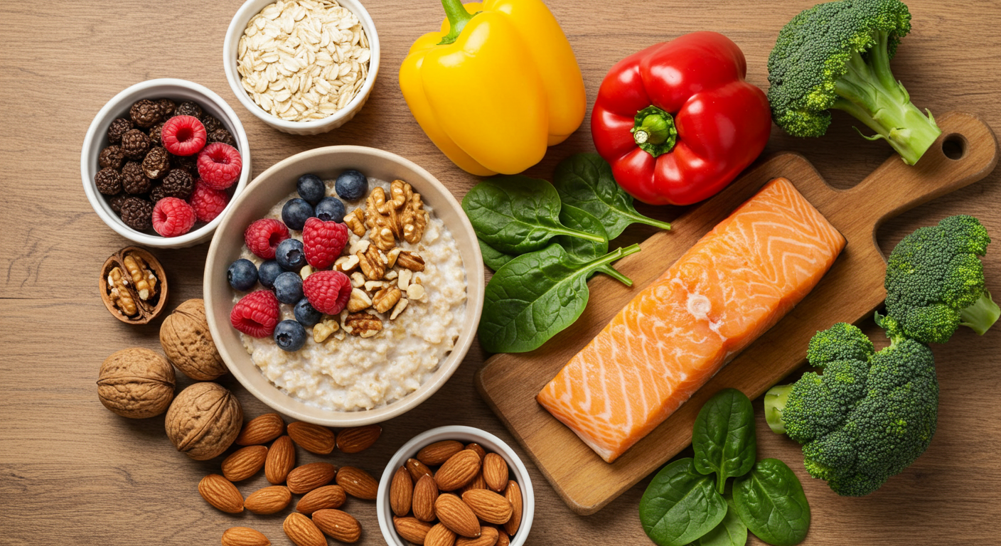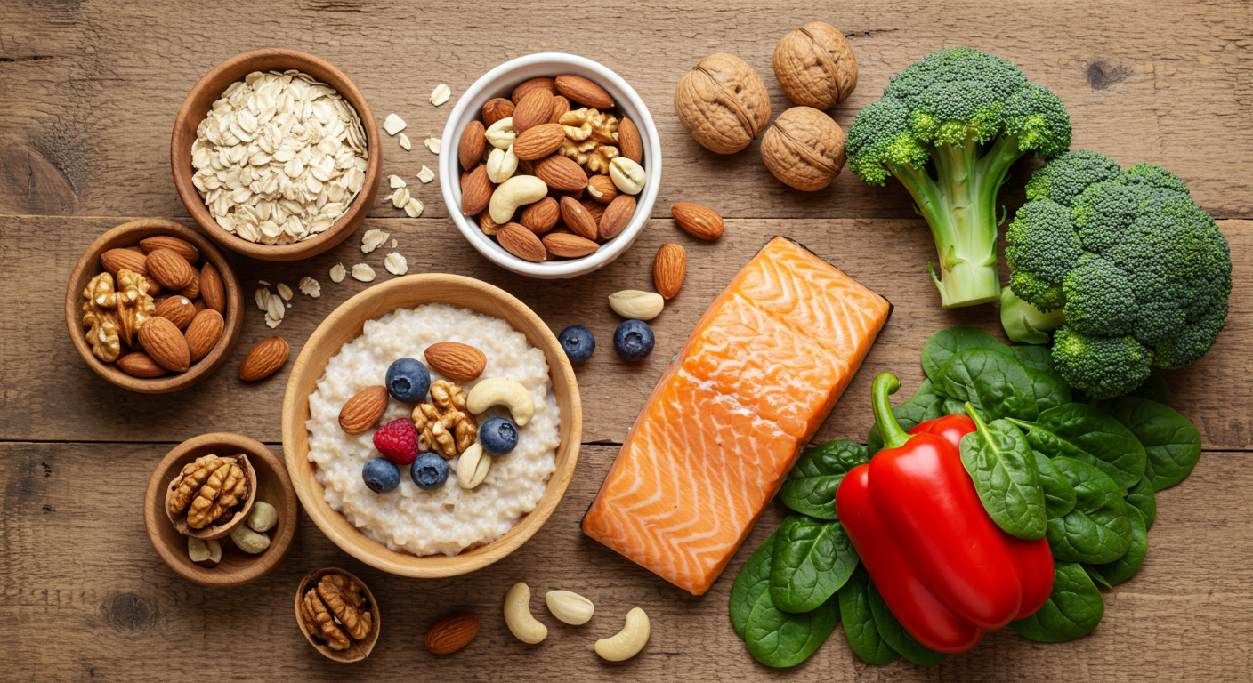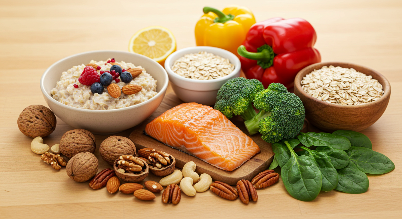 → 귀리, 견과류, 생선(연어, 고등어) 같은 불포화지방산이 풍부한 음식이 좋아요.