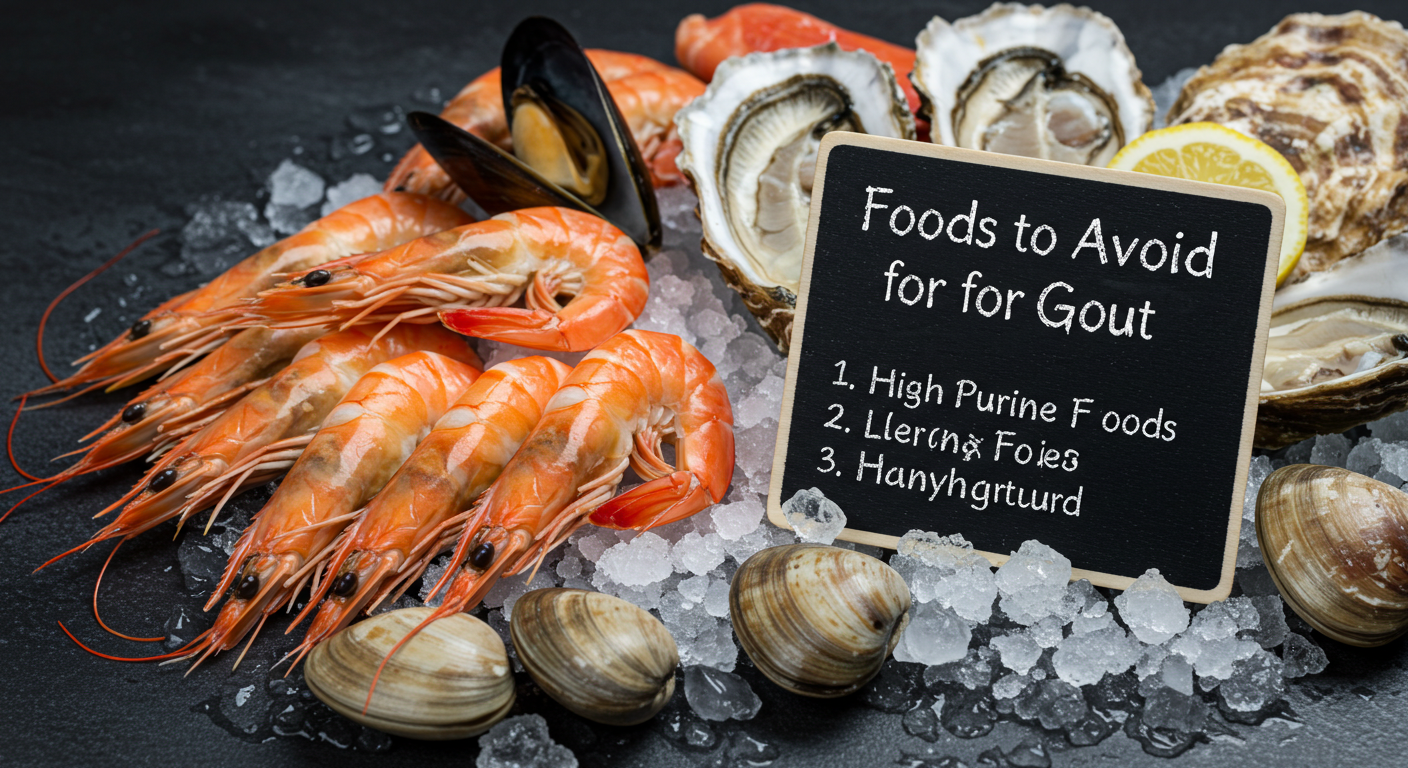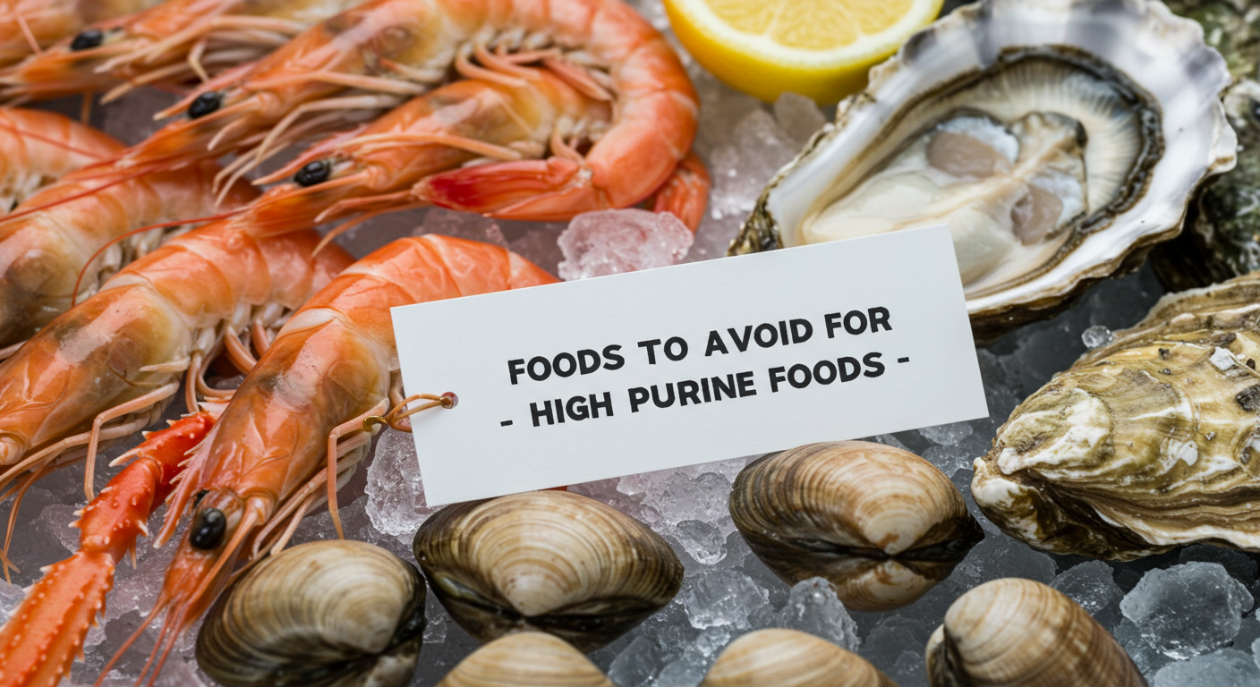 조개, 새우, 굴, 멸치, 고등어 등 일부 해산물은 퓨린 함량이 매우 높다. 해산물은 통풍을 유발하거나 악화시킬 수 있는 주요 원인 중 하나로, 특히 지나치게 자주 섭취할 경우 요산 수치가 상승할 수 있다.