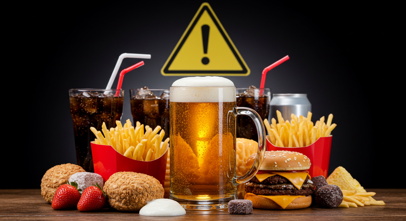 가공식품과 패스트푸드에는 염분, 설탕, 지방이 과다하게 들어 있어 요산 수치를 높일 수 있다. 또한, 이러한 음식은 체내 염증을 촉진시켜 통풍 증상을 악화시킬 수 있으므로 통풍 환자에게 좋지 않다.