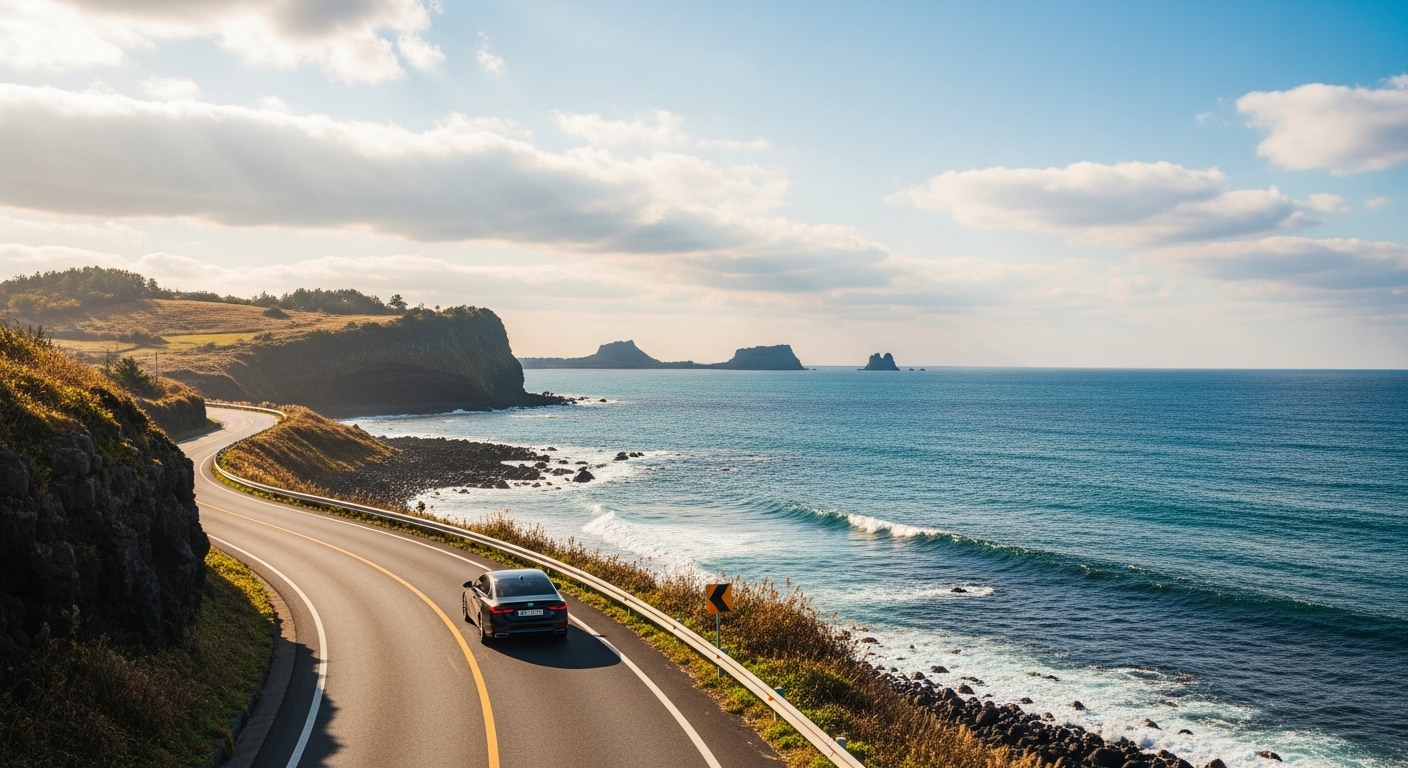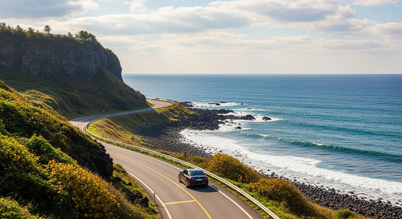 서귀포에서 성산 일출봉까지 이어지는 해안도로는 바다를 바로 옆에 두고 달릴 수 있어요.