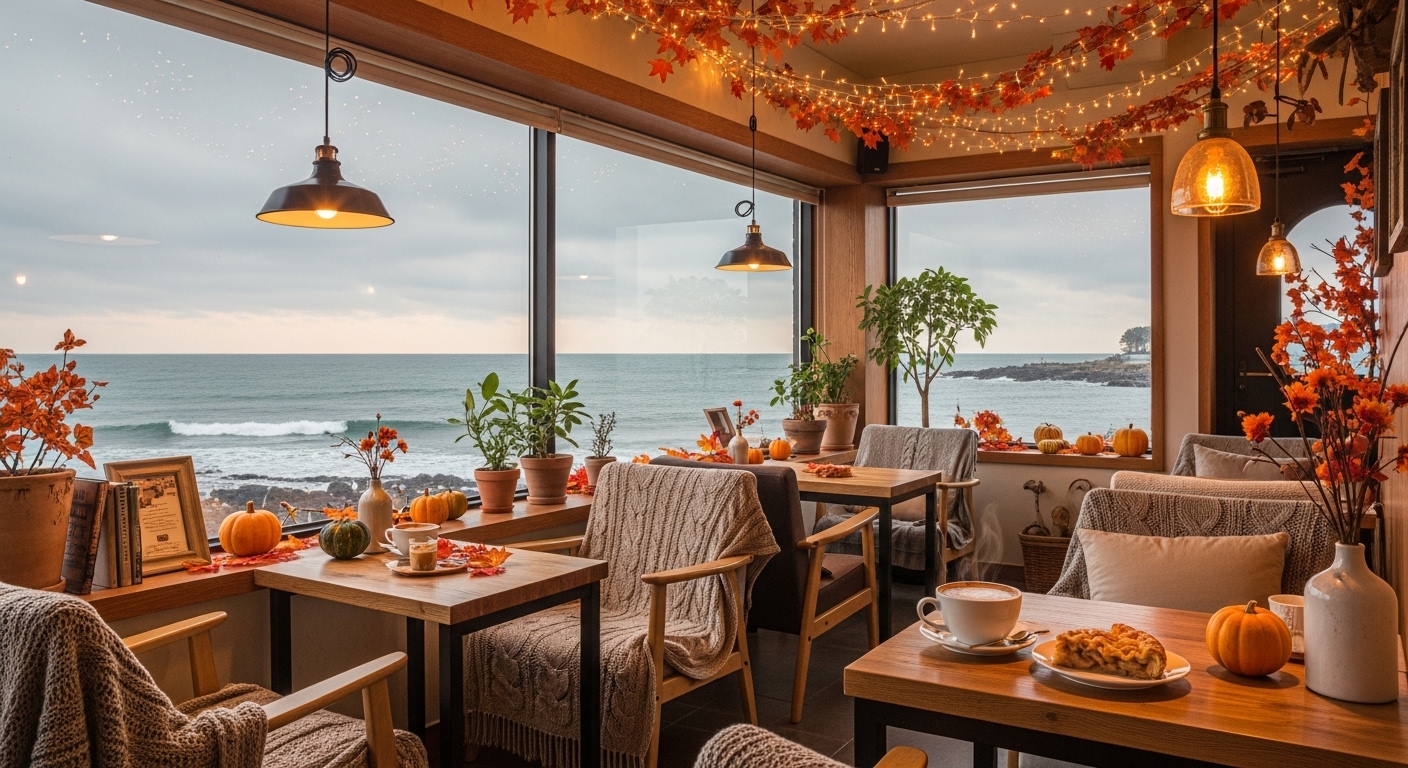 11월에는 햇빛이 부드러워 야외 테라스 좌석에서 풍경을 즐기기 좋습니다.