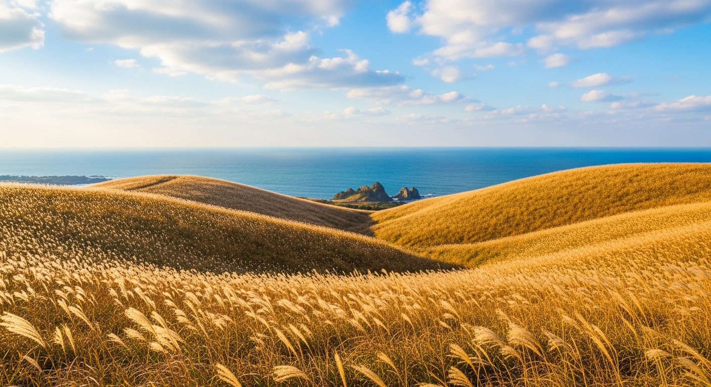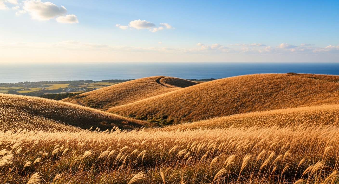 저는 새별오름을 다녀왔는데, 정상에서 바라보는 노란 억새밭과 푸른 바다가 정말 장관이었답니다.