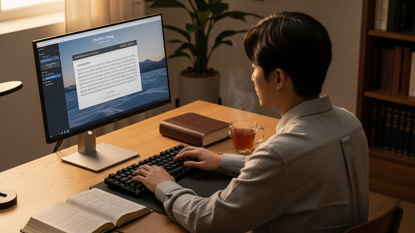 "언제 다 읽지?"라는 막연한 중압감보다, 한 타 한 타 정성껏 채워나가는 과정이 성경의 의미를 깊이 파악하는 비결입니다. 말씀을 마음판에 새기는 가장 명확한 방법, 바로 타자 통독의 활용입니다.